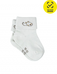 Гладкие однотонные носочки с отворотом для мальчиков с нежным вышивным рисунком. Кеттельный шов.