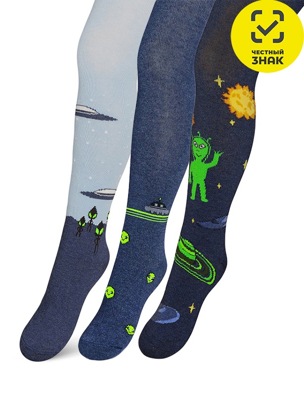 Детские колготки с компьютерным рисунком для мальчиков в тематике "НЛО".
