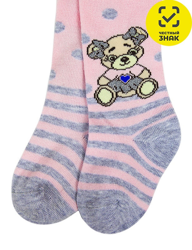 Детские колготки с компьютерным рисунком "мишки" для девочки, украшены люрексной нитью.