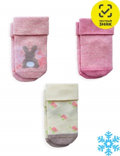 Гладкие носочки для девочек с рисунком, внутренней махрой и отворотом. Кеттельный шов. Цена указана за комплект - 3 пары.