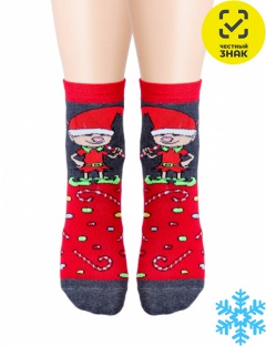 Любители сказок и волшебства будут в восторге от носочков с помощником Санты-Клауса – эльфом. На мыске также запечатлена россыпь желанных сладостей. Модель представлена в трех вариантах: в красно-сером, бирюзово-сером и сине-голубом. Такой выбор позволит наверняка найти нужную пару для ребенка. Носочки связаны из натурального хлопка, который обладает отличным согревающим свойством, поэтому даже в зимние морозы ножка будет защищена.