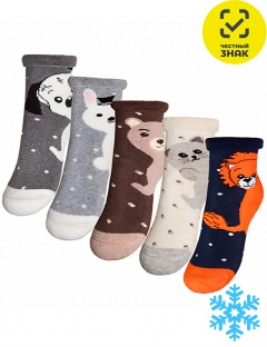 Детские теплые мягкие носки с тематическим вышивным рисунком "Зверята", кеттельный шов.