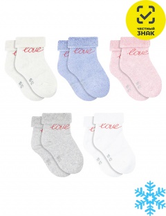 Внутримахровые носочки для маленьких девочек с отворотом и надписью "Love". Кеттельный шов.