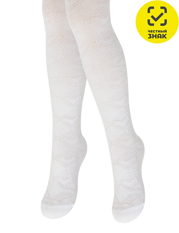 Детские колготки с имитацией ажурного рельефного рисунка с вывязанной резинкой.