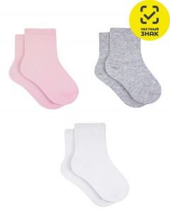 Однотонные гладкие носочки для девочки. Двойной борт, кеттельный шов. Цена указана за комплект - 3 пары.