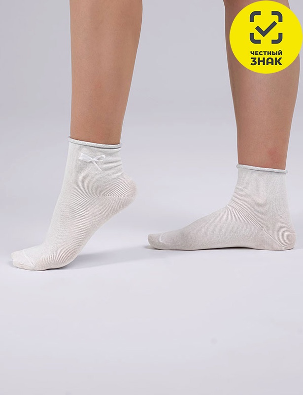 Нарядные носки для девочки с ослабленной резинкой, резинка украшена люрексом, с пришивным бантиком.