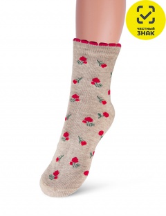 Носки для девочек, рисунок "цветочные мотивы", кеттельный шов, резинка "пикот".
