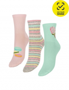 Гладкие носочки для девочек с вывязанным рисунком. Двойной борт. Кеттельный шов. Цена указана за комплект - 3 пары.