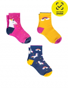 Гладкие носочки для девочек с вышивным рисунком "Единорожки". Кеттельный шов. Цена указана за комплект - 3 пары.