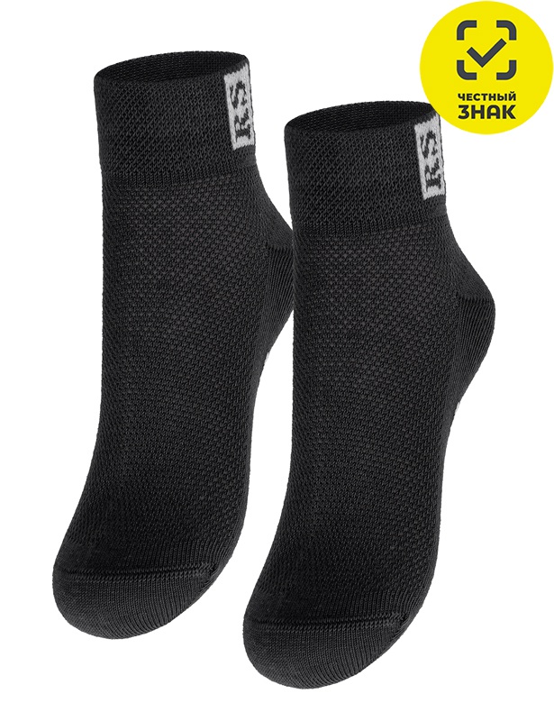 Укороченный носок с двойным бортом, переплетение « сетка» и логотипом «RuSocks».