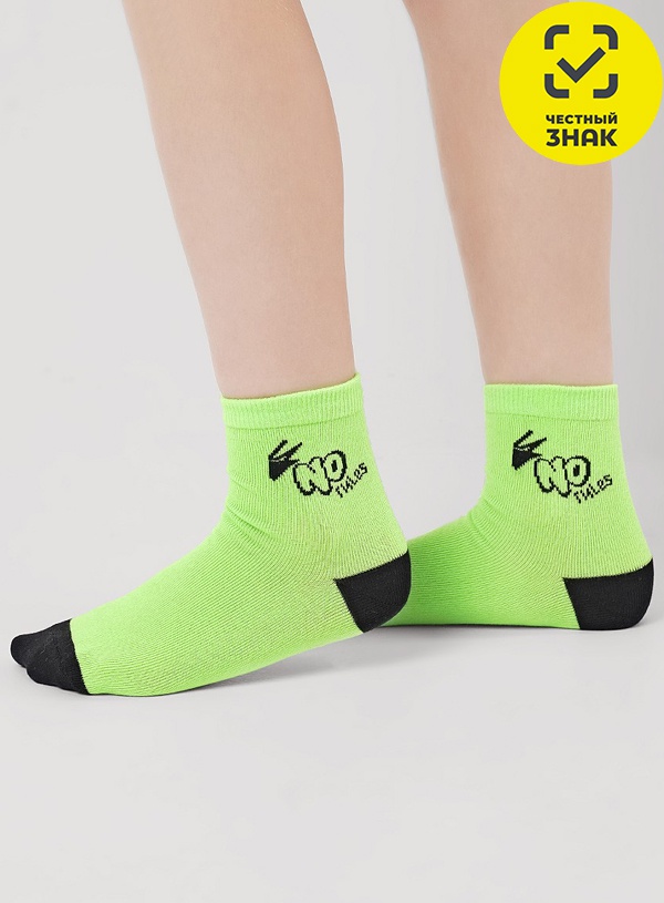 Носки для мальчика, на носке дерзкая надпись «Без правил», мягкая двубортная резинка, усиленный мысок и пятка.