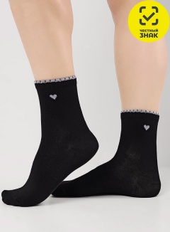 Носки для девочки с резинкой пикот, выделенным бортиком и рисунком сердечко на паголенке.