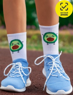 Детские демисезонные носки. Модель из натурального гребенного хлопка, благодаря широкой спортивной резинке, носки комфортно сидят на ноге, не сползая вниз. Модель с очаровательным авокадо поднимет настроение вам и окружающим.
