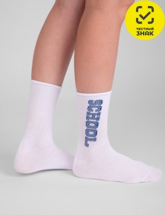 Подростковые носки с лаконичной надписью «SCHOOL» на паголенке. Модель связана из натурального гребенного хлопка, очень комфортная, мягкая и подходит для повседневной носки. Широкая резинка мягко облегает ногу, не сползая и не доставляя неприятных ощущений.