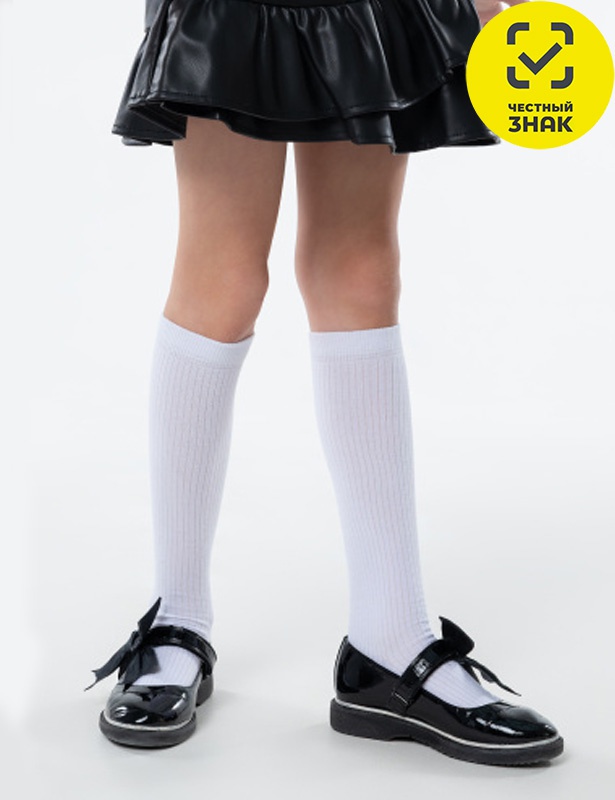 Гольфы для девочки однотонные, с фактурой в рубчик. Лаконичная модель связана из натурального гребенного хлопка. Подойдет для любого образа: от школьной формы до праздничного наряда.