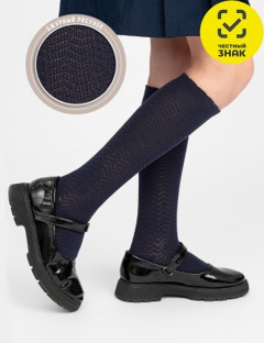 Гольфы для девочки с ажурным рисунком и фактурным бортом. Лаконичная модель связана из натурального гребенного хлопка. Подойдет для любого образа: от школьной формы до праздничного наряда.