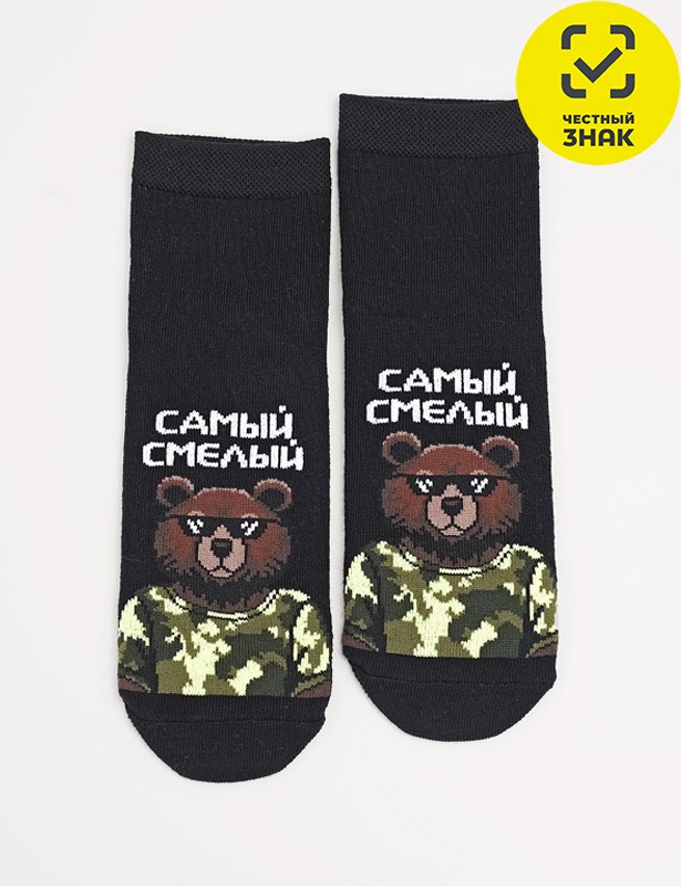Носки на мальчика с рисунком на мыске и надписью "Самый смелый".