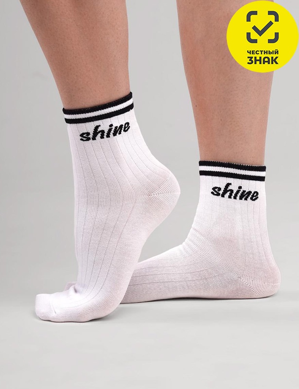 Носки для девочки с контрастными полосами на паголенке и надписью.