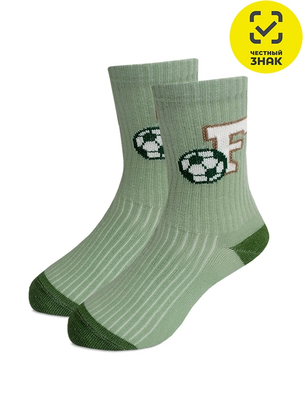 Демисезонные высокие носки с переплетением "лапша" и рисунком в футбольной тематике.