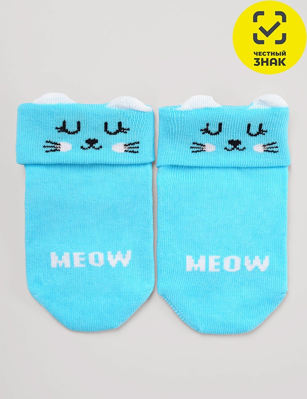 Ясельные носки с мордочкой животных и 3Д ушками, по следу нанесены силиконовые стоперы