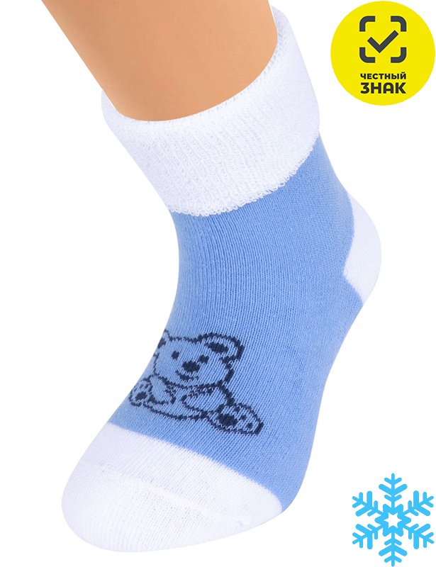 детские носки с отворотом и изображением мишки, плюш внутри