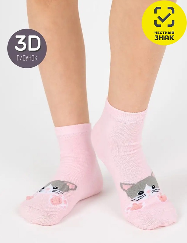 Носки детские со средним паголенком, двубортная резинка, рисунок "кошечка с лапками" на носке.