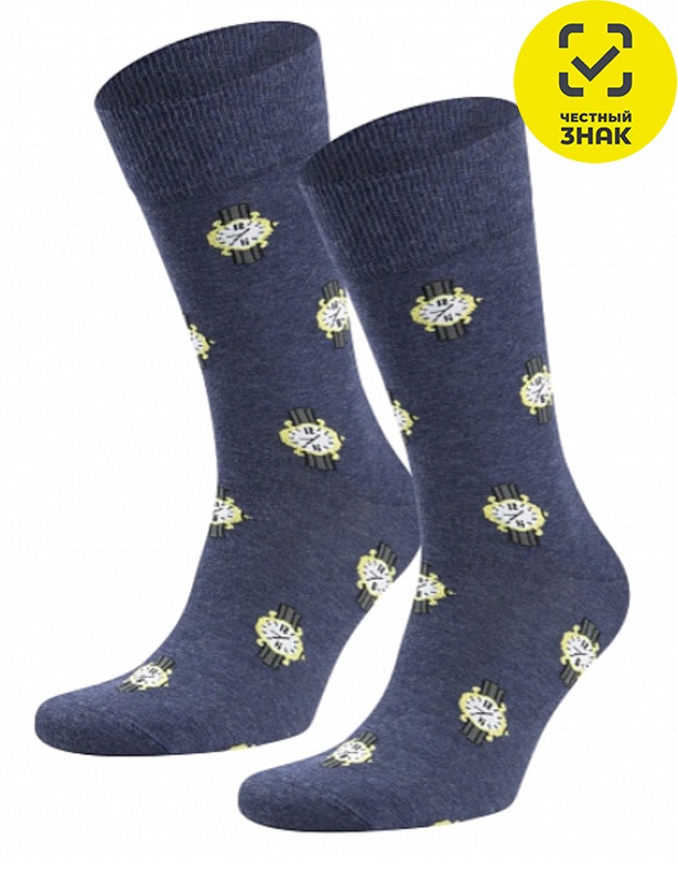 Яркие носки с двойным бортом и высоким паголенком. Стильный рисунок - "Часы".