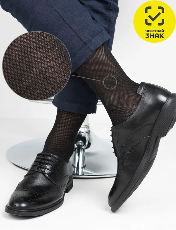 Мужские носки в сетку. Мягкая хлопковая основа создаёт ощущения лёгкости и комфорта, а добавление эластана усиливает устойчивость изделия к истиранию. Специально разработанная сетка обеспечивает дополнительную вентиляцию ног, потому модель идеально послужит для ежедневного использования в летний период.