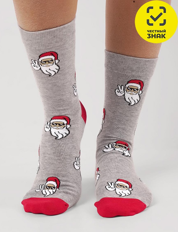 Носки мужские с выделенным мыском и пяткой , с рисунками лицо деда мороза