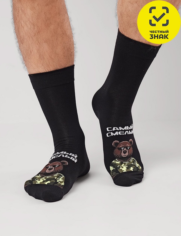 Мужские носки с рисунком на мыске и надписью Самый смелый.