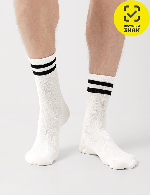 Мужские носки с декоративными полосками на паголенке.