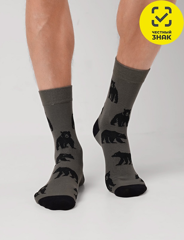 Носки мужские с игровым рисунком медведя.