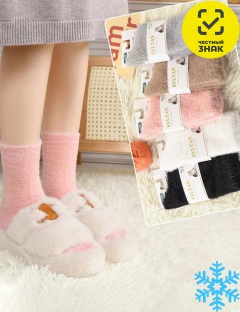 Носки женские теплые из шерсти, со средним паголенком, однотонные.