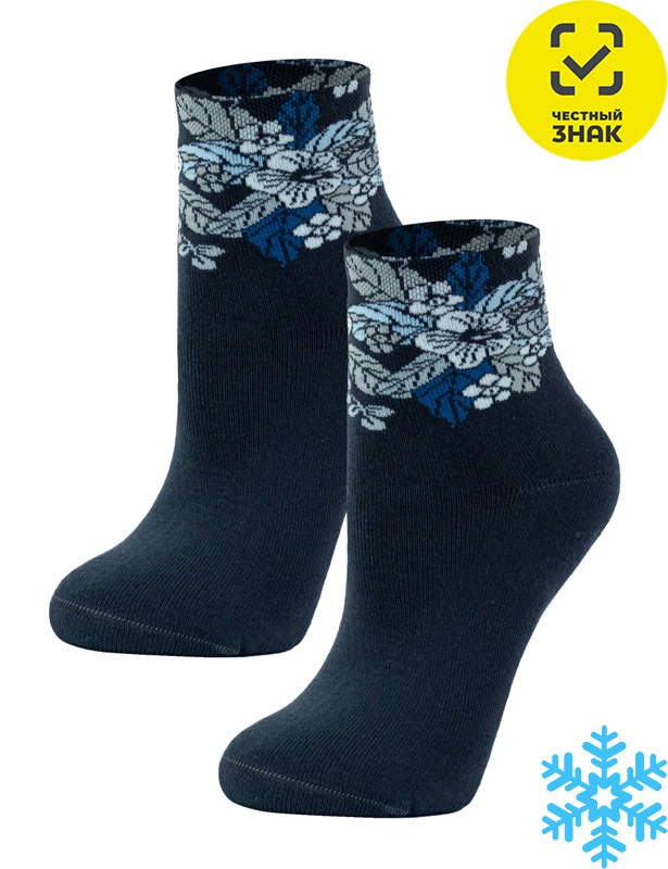 Носки женские с внутренней махрой и рисунком на паголенке, кеттельный шов.