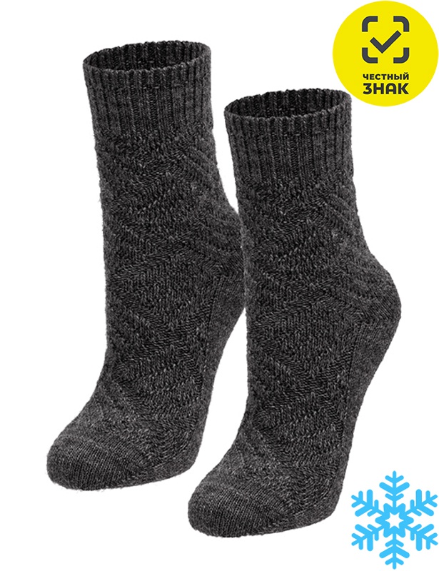 Полушерстяные женские носки с одинарным бортом и рельефным рисунком.