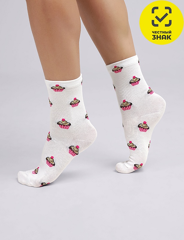 Женские носки со средним паголенком — удобная и практичная модель для повседневной носки. Они имеют средний паголенок, удобную резинку на паголенке и принт на носке.