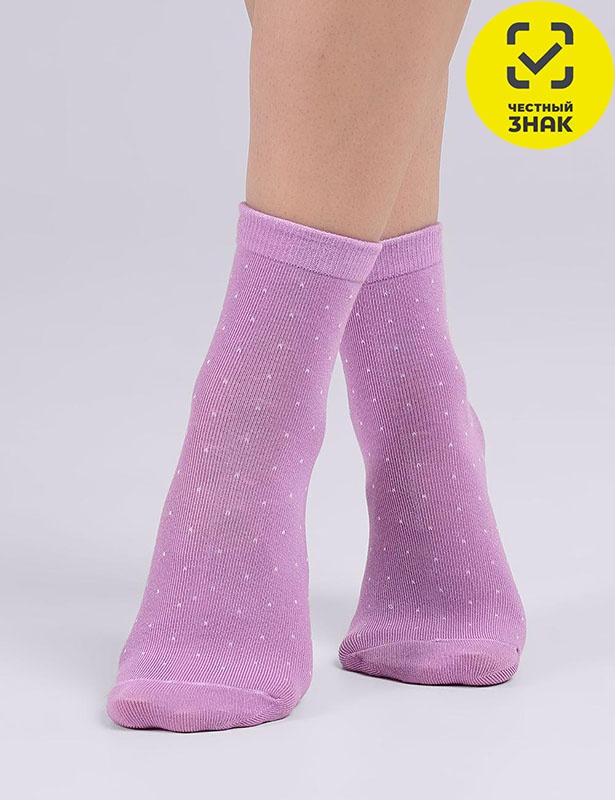 Производитель: ТМ Clever Артикул: CLES Носки женские L1002 (св.фиолетовый) Пол: ЖЕНСКИЙ Полотно: гладь с рисунком Состав: 70% хб, 25% па, 5% эл Возраст: взросл