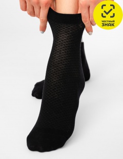 Женские носки. Модель связана из натурального гребенного хлопка, благодаря этому очень мягкая, обладает хорошей воздухопроницаемостью и гигроскопичностью. Сеточка по верхней части носка обеспечивает повышенную воздухопроницаемость и добавляет изделию оригинальности. Носки комфортно сидят на ноге, не сползая и не доставляя дискомфорт.