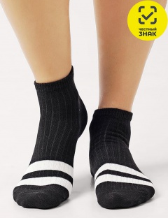 Укороченные женские носки с двумя полосками по следу. Тонкая мягкая резинка, которая не сдавливает ногу, усиленный мысок и пятка, кетельный зашив мыска.