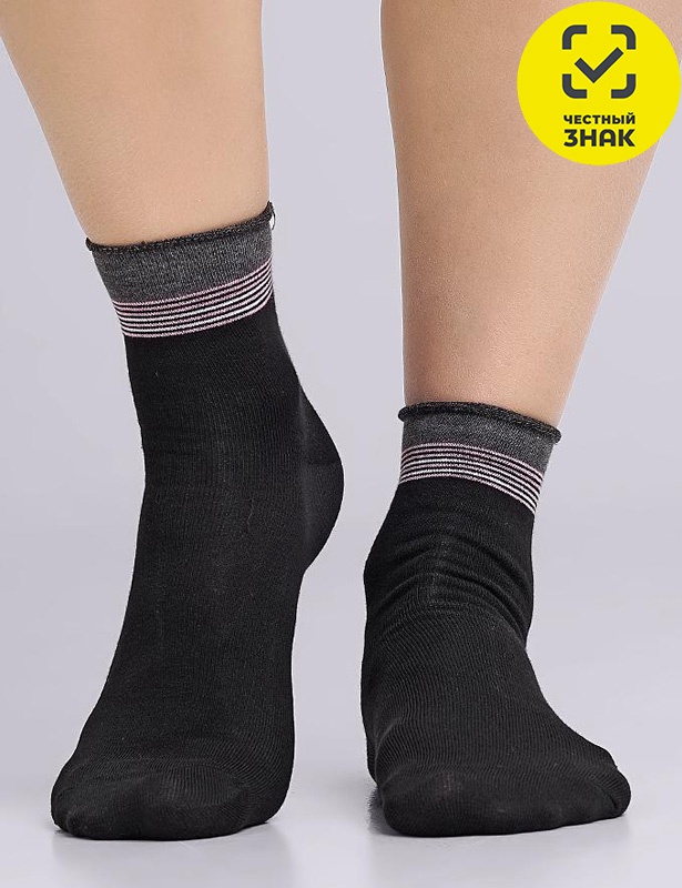 Производитель: ТМ Clever Артикул: ЭЙС Носки жен.Д115ш (чёрный) Пол: ЖЕНСКИЙ Полотно: гладь с рисунком Состав: 70% хб, 25% па, 5% эл Возраст: взросл