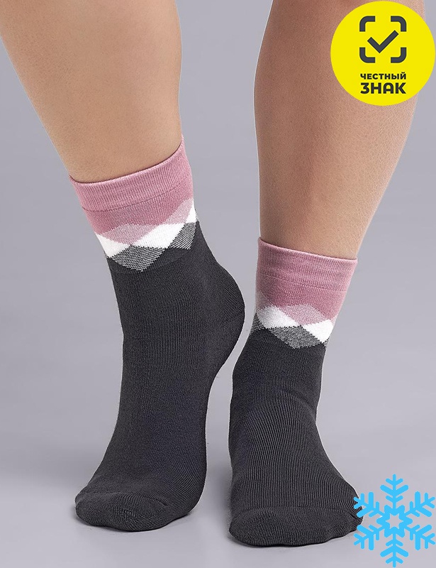 Женский плюшевый носок со стильными ромбами на паголенке.
