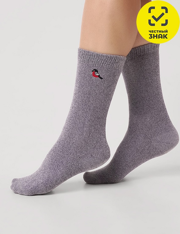 Мягкие женские новогодние носки с вышивкой