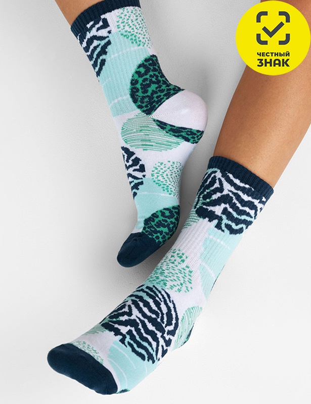 Женские носки. Модель связана из натурального гребенного хлопка и подходит для повседневной носки. Двубортная резинка мягко облегает ногу, не доставляя дискомфорт. Декорированы интересным принтом.
