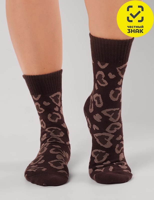 Женские носки с леопардовым принтом в виде сердечек.