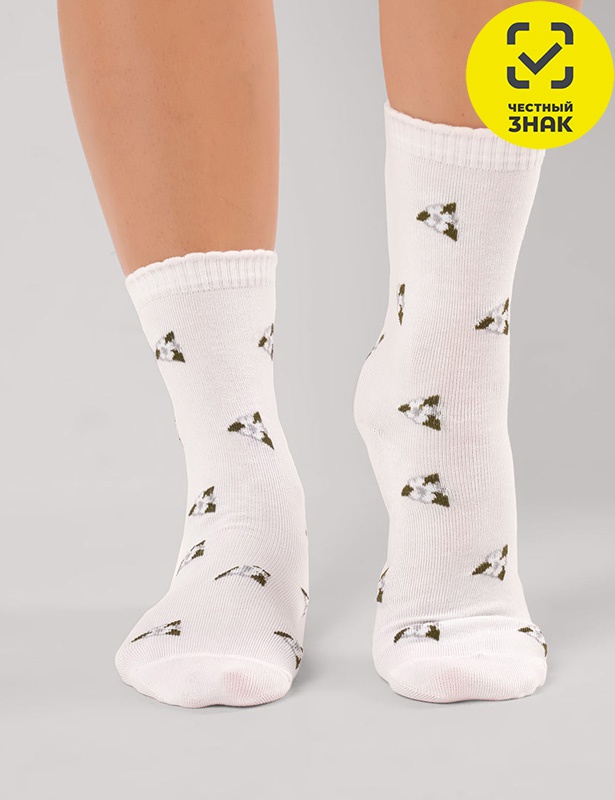 Производитель: ТМ Clever Артикул: CLE Носки жен.Д5627 (белый) Пол: ЖЕНСКИЙ Полотно: гладь с рисунком Состав: 70% хб, 25% па, 5% эл Возраст: взросл