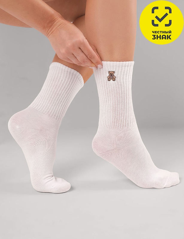 Женские носки с вышивкой мишка.