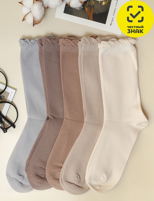 Женские высокие носки из хлопка с резинкой "рюшки"