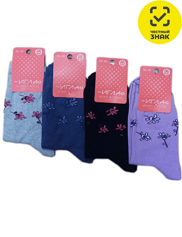Производитель: Игла Артикул: Носки женские 5И Пол: ЖЕНСКИЙ Полотно: гладь с рисунком Состав: 85% хб, 12% па, 3% эл Возраст: взросл