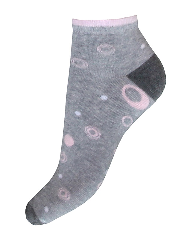Женские носки, с укороченным паголенком, усиленные мысок и пятка, по всему носочку провязаны кружочки.