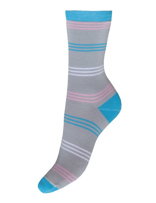 Женские носки, с высоким паголенком, резинка, мысок и пятка выполнены из контрастного цвета, по всему носочку лаконичные стильные полоски.